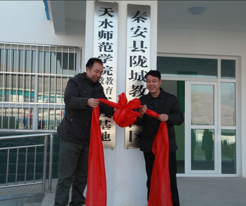 伴随着热烈的掌声,教师教育学院党总支书记汪世堂和秦安县教育局局长张耀清共同为实践基地正式揭牌。揭牌仪式标志着我院和秦安县陇城教育园区的合作关系向更深层次推进。