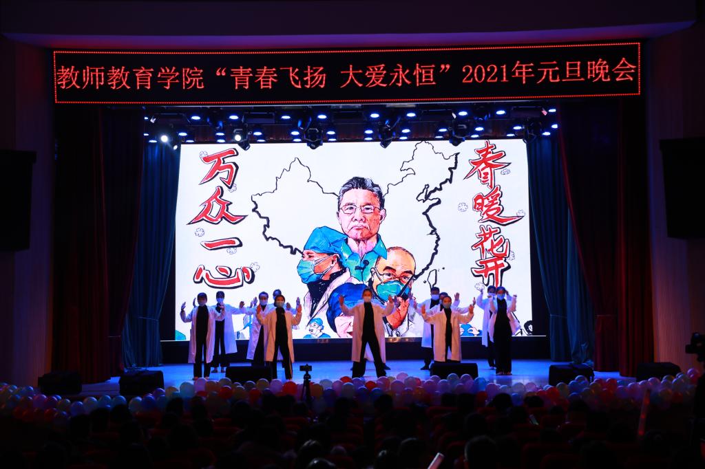 2020年12月21日晚,天水师范学院教师教育学院“青春飞扬,大爱永恒”2021年元旦晚会在学校大礼堂华丽上演,全体师生带着对新年的美好期盼欢聚一堂。